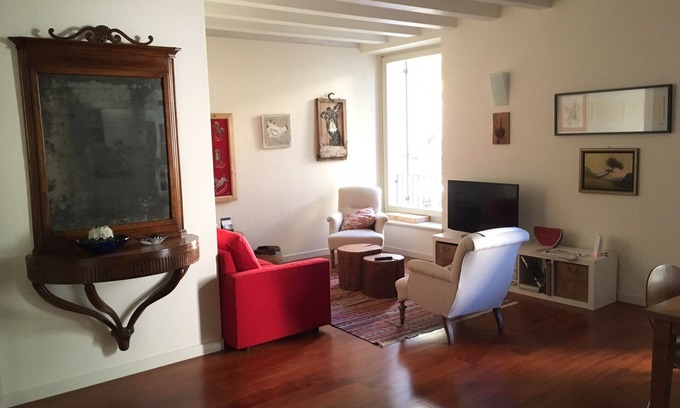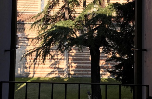 The apartment is located right on the side of the Abbey of S. Zeno, the most important Romanic church in Verona, and from the windows of the living room you can enjoy the magnificent view of the garden and the church. In ten minute walk along the Adige river, you can reach Castel Vecchio and the Arena, the historic center of the city.