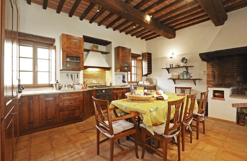 For the enthusiast or professional cook, the Villa features a fully equipped kitchen, an open concept living/dining room with a vast original wood-burning fireplace and a dining table (in the style of a "fratina rinascimentale") that can seat 12.