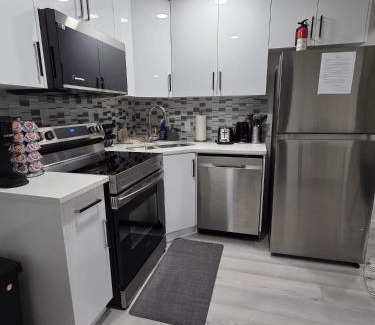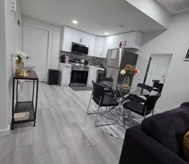 Elegant & Cozy 2 Bdrm Basement suite near WEM is located in Edmonton, just 6.9 miles from West Edmonton Mall and 10 miles from University of Alberta. Both free Wifi and parking on-site are available at the guest house free of charge. Shaw Conference Centre is 11 miles away and Fort Edmonton Park is 11 miles from the guest house. This guest house includes 2 bedrooms, a living room and a flat-screen TV, an equipped kitchen with a dining area, and 1 bathroom with a bath and a washing machine. Towels and bed linen are featured in the guest house. For added privacy, the accommodation features a private entrance. Whyte Avenue is 12 miles from Elegant & Cozy 2 Bdrm Basement suite near WEM, while Lancaster Park Golf Course is 13 miles away. Edmonton International Airport is 19 miles from the property.