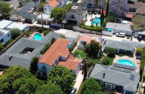 This elegant 1920s Spanish home has a large private downstairs bedroom and full bath with french doors opening onto a lovely garden. You'll also find a flat screen TV, hardwood floors, a ceiling fan, kitchenette with mini refrigerator and microwave, laundry facilities, bikes, BBQ and ample parking.
