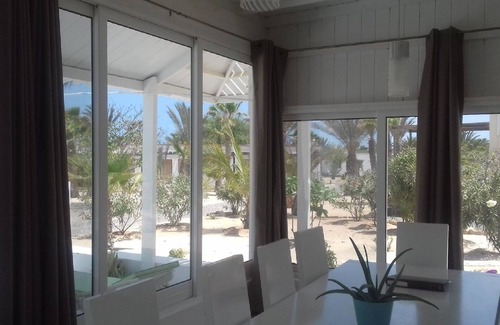 Elegant and very comfortable house, just 20 meters from the beach, sea view: two double bedrooms with bathroom inside, big livingroom with open kitchen, service bathroom, veranda and parking wi-fi. Inclued . Not included touristic tax 2,5€/day/pax, minimum 16 years old, max 10 days, transfer 10 euros, breakfast 10 euros per person. Praia de Chaves is located 1km from the small town Rabil, 300mt from the famous Beach Bar Restaurant Perola d Chaves and 6km from the town Sal Rei.