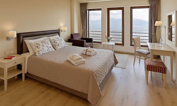 A cozy room with stunning views of Lake Pamvotis promises a memorable stay. Arktos Hotel is set at 950m altitude in the traditional village of Ligiades, just 9 km from Ioannina.