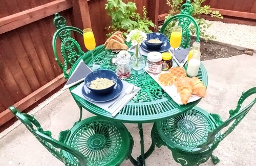 The property itself is newly furnished and recently decorated. On the ground floor is a cosy front room with a comfortable sofa bed and smart TV. There is also a well equipped kitchen with a high top dining area. To the rear of the property is a courtyard with seating for the warmer months.