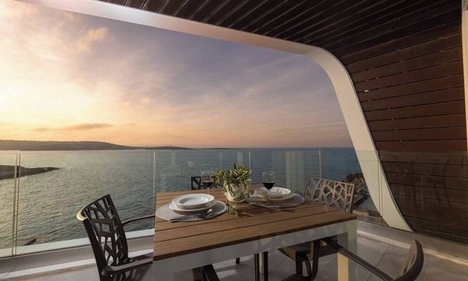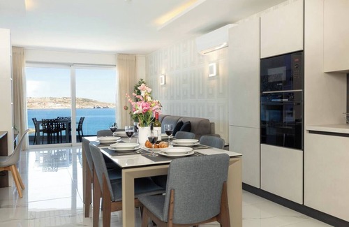 Elegant seaview apartment in the heart of Bugibba Enjoy modern design, a cozy bedroom, and a bright living area with a private terrace overlooking the Mediterranean — perfect for a relaxing coastal getaway is located in Qawra. Elegant seaview apartment in the heart of Bugibba Enjoy modern design, a cozy bedroom, and a bright living area with a private terrace overlooking the Mediterranean — perfect for a relaxing coastal getaway provides accommodation, featuring Bedding/Linens, Child Friendly, Internet, among other amenities. This Apartment features Bedding/Linens, Child Friendly, Internet, to make your stay a comfortable one.