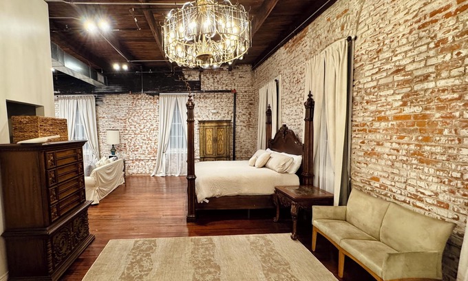 Guests will be staying above a newly restored, elegant boutique venue space. Visitors can also enjoy the New Orleans-style coffee shop & café right next to the venue on the ground floor. With a beautiful courtyard out front, the Kinberger's ritzy atmosphere will show you the classiest of Plaquemine!