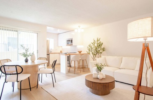This beautifully updated studio apartment offers the perfect blend of style, comfort, and location in the heart of Santa Monica. Fully furnished with high-end finishes and modern décor, the space features an open-concept layout with a sleek kitchen, premium appliances, and a bright living area. The spa-like bathroom includes a walk-in shower and elegant fixtures. Located in a secure building with a resort-style pool, barbecue area, and gated parking, and just minutes from Montana and the beach.