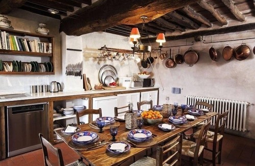 Set in 25 hectares of olive terraces, gardens and woods and with a freshwater spring, this 16th Century villa's views are exceptional, even by Italian standards. It is a villa of rare charm and serenity with its own swimming pool, games room and cinema room. The villa sleeps 10 guests in 5 double bedroom suites. The garden suite in the adjacent farmhouse offers an extra double bedroom and bathroom. Families with children are welcome. The villa has been restored with integrity and authenticity and throughout there is relaxed refinement. Air conditioning is provided in the villa bedrooms and the ancient thick walls ensure a cool interior even in the height of summer. A terra-cotta-tiled terrace, lined with lemon trees, leads onto a shaded pergola with a large travertine table and dining chairs. In summer this is, in effect, an outdoor living and dining room. A charcoal barbecue makes outdoor cooking simple, and there is a wood-burning, traditional pizza oven. An evening of pizza-making is great fun for all ages. The swimming pool, with a shallow end for the little ones, is set just below the villa on a separate, deep terrace. Sheltered and with all-day sun, it has sweeping views of the valley. A second pergola and other seating areas provide shade and repose for those who prefer alternative garden views. Indoors there is a games room with pool/billiards/snooker, pro table football and darts. The sitting room is also a cinema room with a projector, drop down screen and surround sound. Great walking, cycling and visits to local places of interest. Cook service, on site masseuse, yoga classes, winery tours, local tour guide all available on request.