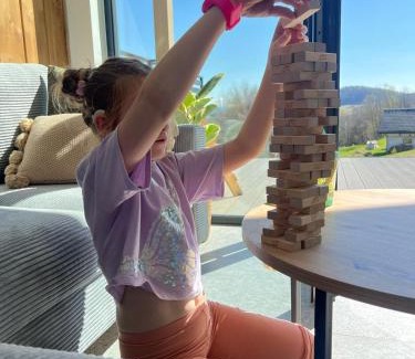 Food & DrinkTea/Coffee maker, Bottle of waterBathroomWalk-in shower, Private bathroom, Hairdryer, Toilet, Body soap, Shampoo, Toilet paper, Bathtub or shower, Shower, Free toiletries, TowelsMedia & TechnologyFlat-screen TV, TVGeneralAir conditioning, Key access, Trash cans, Fire extinguisher, Fan, Hardwood or parquet floors, Heating, Private entrance, Tile/Marble floorKitchenCleaning products, Stovetop, Coffee machine, Kitchenette, Wine glasses, Electric kettle, Dishwasher, Dining table, High chair, Refrigerator, KitchenwareOutdoorsBarbecue, Outdoor furniture, Outdoor dining area, Balcony, TerraceLiving AreaDesk, Dining area, Sofa, Sitting areaViewView, Landmark view, Garden view, Mountain viewBedroomLinens, Wardrobe or closetAccessibilityUpper floors accessible by stairs onlyBuilding CharacteristicsDetachedRoom AmenitiesSofa bed, Drying rack for clothing, Non-feather pillow, Socket near the bed, Clothes rackEntertainment & Family ServicesBoard games/puzzles |