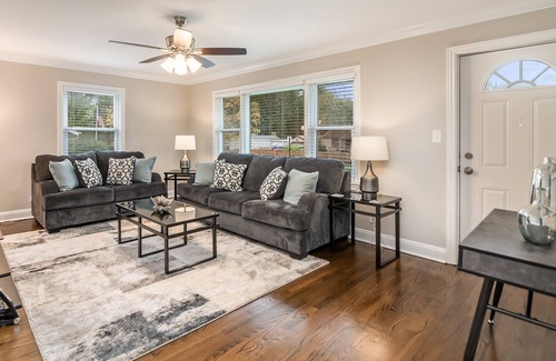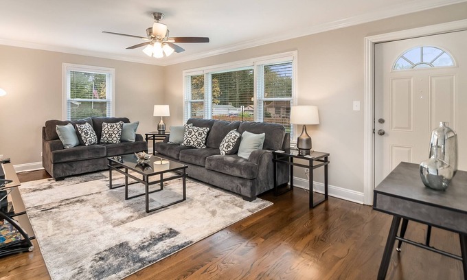 2100 SF renovated unit is 7-9 min away from interstate 90, which takes you straight to O'hare Air & downtown! This property has 4 bedrooms, & 2 full bathrooms. Master suite has a KING, and 3 bedrooms have a Queen. The living room has room for 1 air mattress (Total of 5 beds). Plenty of Kitchen utensils, all you need in a kitchen, including cooking spices and oils! Children friendly & lots of technology!