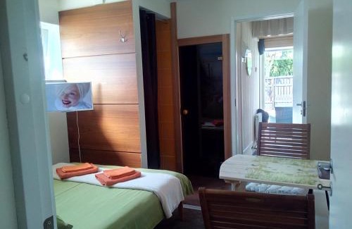 BathroomToilet, Toilet paper, Shower, Private bathroom, Towels, Shampoo, Body soapKitchenWine glasses, Toaster, Kitchenette, Electric kettle, Kitchenware, Refrigerator, Cleaning products, MicrowaveLiving AreaDeskGeneralTile/Marble floor, Trash cans, Heating, Fire extinguisher, Private entrance, Smoke Alarm, CarpetedMedia & TechnologyFlat-screen TV, Cable channelsViewQuiet street view, Garden viewOutdoorsOutdoor furniture, Terrace, Outdoor dining areaBedroomLinensAccessibilityEntire unit located on ground floorBuilding CharacteristicsSemi-detached, Private apartment in buildingRoom AmenitiesSocket near the bed, Feather pillow, Drying rack for clothing, Clothes rack |
