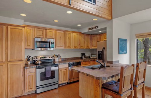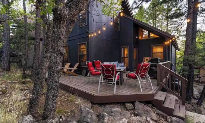 This unique cabin offers an incredible place for families or groups of friends looking to getaway to the mountains. Close to skiing in Flagstaff secluded by being backed up to the forest, you get the best of both worlds.