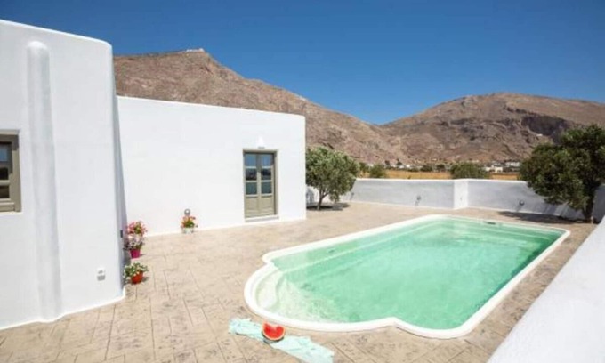 Yes, this Perissa villa has a swimming pool. Check the Facility Overview section for details about the pool and other available facilities.