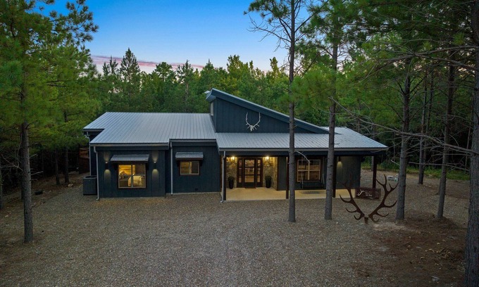 Discover "Elkhorn on the Creek," a blend of high-end luxury and rustic charm nestled among towering pines, offering privacy and breathtaking wooded creek views. From foosball, horseshoes, and cornhole to an arcade console, ping pong, and a hot tub, alongside expansive covered outdoor areas and a beautiful creek flowing through the property, Elkhorn on the Creek caters to all tastes and ages, ensuring a memorable getaway for everyone. This pet-friendly retreat sleeps 10 and is packed with amenities for endless entertainment and relaxation.