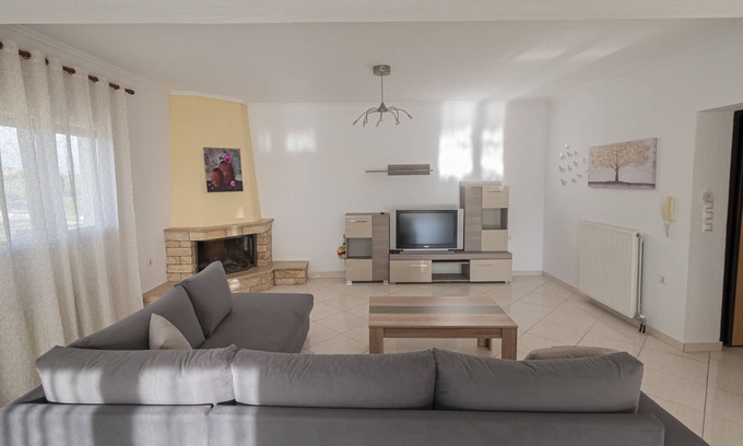 Elli Lux Home is located in beautiful Nea Flogita, a seaside village in Halkidiki, known for its clean beaches and quiet atmosphere. Ideal for families and groups looking for a relaxing stay near the sea. The house has three spacious bedrooms, a comfortable living room with a flat screen TV and a dining area, where you can relax and enjoy your time with your family or friends. The kitchen has a fridge, oven, microwave, dishwasher and kitchenware to prepare your meals.The accommodation has a modern bathroom with a shower. Towels and toiletries are provided. The property is located in a quiet area, close to shops, restaurants and cafes. The beach is just a few minutes' walk away, offering easy access to the wonderful shores of Nea Flogitos. In the area you can enjoy water sports, hiking and excursions to nearby destinations.