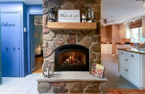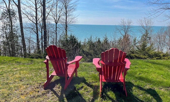 Find your happy place at the First on Elmslie, a country oasis with a lush yard and private lake beach. Sip a glass of wine in front of the fireplace, admire Lake Huron's blue waters from the shore, or curl up in an armchair and gaze out at the greenery. Spend mornings listening to birdsong over breakfast, afternoons go for a hike, and evenings together watching the sunset.