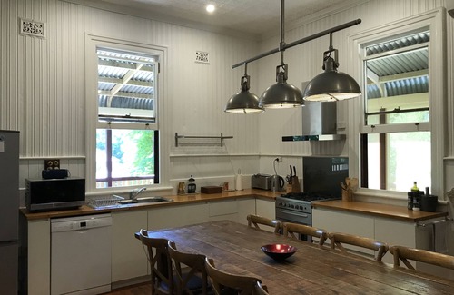 The house - Accommodates six guests across three queen bedrooms. There are two bathrooms, a full country style kitchen, formal lounge room with smart TV and large veranda overlooking Healesville. With original hardwood floors, pressed tin ceilings and panelled walls, this house is full of charm and character.