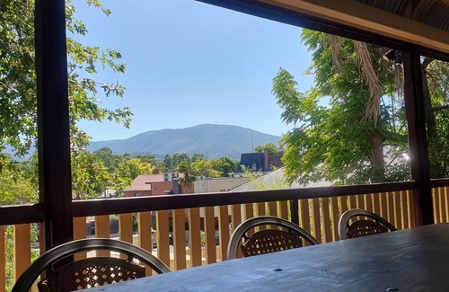 Elmview House and Apartment on Symons is located in the heart of Healesville, an easy two minute walk to the main street. With views across to Mt St Leonard, the heritage listed property has five bedrooms and can host up to 10 people. There is a three bedroom house and a two bedroom studio apartment. Both are self contained with kitchen and living areas. Wi-fi internet is included. There is also a large entertaining area with Weber BBQ and outdoor table. Relax and enjoy the sunset from the wide verandahs that surround the house.