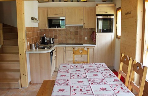 "Elorian", 4-room chalet 100 m2 on 2 levels. Comfortable and tasteful furnishings: living/dining room with open-hearth fireplace, dining table, satellite TV, flat screen, radio and DVD. Exit to the garden, to the terrace. Kitchenette (oven, dishwasher, 4 ceramic glass hob hotplates, microwave, electric coffee machine, Capsules for coffee machine (Nespresso) extra, raclette grill, fondue Set (chinoise, cheese)). Shower/WC. Electric heating. Upper floor: 1 room with 1 french bed (1 x 140 cm, length 190 cm), radio. Exit to the balcony. 1 children's room with 1 x 2 bunk beds (90 cm, length 190 cm). 1 room with 1 pull-out bed (2 pers. 2 x 90 cm, length 200 cm). Exit to the balcony. Bath/WC, double hand-basin. North-east facing position, lawn 100 m2. Terrace furniture, barbecue, deck chairs (6). Beautiful view of the mountains. Facilities: washing machine, dryer, iron, baby cot for up to 3 year olds, hair dryer. Internet (WiFi, free). Parking (fenced 2 cars) at 5 m. Please note: non-smokers only.