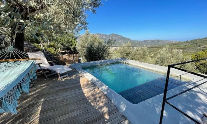Located in the picturesque village of Fornalutx, this charming country house offers a tranquil retreat in a stunning mountain setting. With a capacity for four people, the two-story property offers wonderful views of the Tramuntana mountain range, a private pool, and lush outdoor corners to enjoy the good weather.