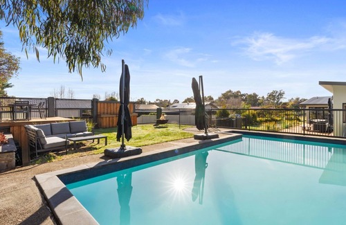 The house, surrounded by native gardens and lawns, is a short walk into town. Offering three bedrooms, two bathrooms (one with spa bath), two living areas, laundry, pool, and outdoor entertaining, this modern country retreat will have you relaxing in no time.