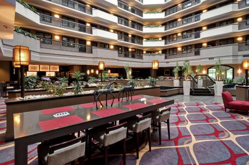 Located in Herndon, 22 miles from Air Force Memorial, Embassy Suites by Hilton Dulles Airport provides accommodations with a fitness center, private parking, a shared lounge and a restaurant. This 4-star hotel offers an ATM and a business center. The property has a 24-hour front desk, airport transportation, room service and free WiFi throughout the property. Guest rooms at the hotel come with air conditioning, a seating area, a flat-screen TV with cable channels, a safety deposit box and a private bathroom with a bath or shower, free toiletries and a hairdryer. All rooms will provide guests with a fridge. Guests at Embassy Suites by Hilton Dulles Airport can enjoy an à la carte or an American breakfast. At the accommodation guests are welcome to use an indoor swimming pool. US Marine Corps War Memorial is 22 miles from Embassy Suites by Hilton Dulles Airport, while Women in Military Service for America Memorial is 23 miles away. Washington Dulles International Airport is 4.3 miles from the property.