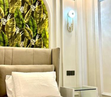 Providing a garden, Emeralds Villa Islamabad offers accommodations in Islamabad. This property offers access to a balcony and free private parking. Outdoor seating is also available at the villa. Offering a terrace and garden views, the spacious villa includes 3 bedrooms, a living room, flat-screen TV, an equipped kitchen, and 3 bathrooms with a bath. For added convenience, the property can provide towels and linens for a supplement. Shah Faisal Mosque is 4.6 miles from Emeralds Villa Islamabad, while Lake View Park is 9.2 miles from the property. Islamabad International Airport is 18 miles away.