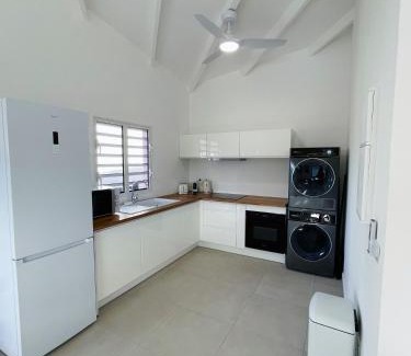 Emeraude Bay, Magnifique T3 vue mer, proche plage is a recently renovated apartment in Le Gosier, near Plage de Bas-du-Fort. This property offers access to a balcony, free private parking, and free Wifi. Outdoor seating is also available at the apartment. Providing a terrace and sea views, the spacious apartment includes 2 bedrooms, a living room, satellite flat-screen TV, an equipped kitchen, and 1 bathroom with a walk-in shower. Towels and bed linen are provided in the apartment. For added privacy, the accommodation has a private entrance and soundproofing. Guests at Emeraude Bay, Magnifique T3 vue mer, proche plage will be able to enjoy activities in and around Le Gosier, like snorkeling and walking tours. Plage de la Caye d'Argent is a 7-minute walk from the accommodation. Pointe-à-Pitre Le Raizet Airport is 4.3 miles away.