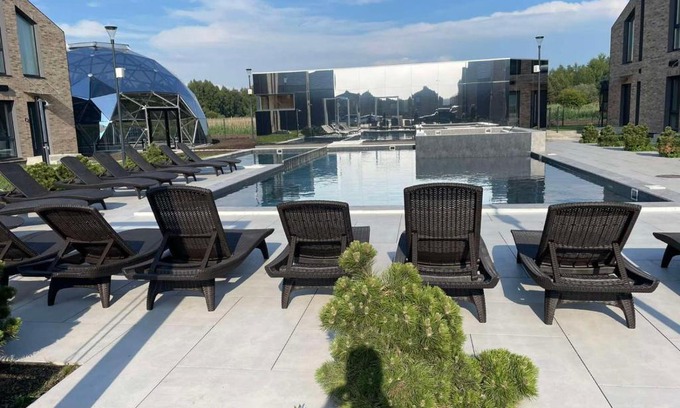 Emgus cottages (Nature & Comfort) in Palanga provides accommodations with a garden and barbecue facilities. With pool views, this accommodation features a terrace and a swimming pool. The apartment provides rooms with air conditioning, free private parking, and free Wifi. The accommodation comes with a fully equipped kitchen with a dishwasher and kettle, a flat-screen TV, and a private bathroom with shower. At the apartment complex, the units are equipped with bed linen and towels. The apartment offers a variety of wellness options, including a sauna, a hot tub, and yoga classes. For guests with children, the apartment offers kids pool and outdoor play equipment. If you'd like to discover the area, cycling is possible in the surrounding area, and Emgus cottages (Nature & Comfort) can arrange a bicycle rental service. Sventoji Nudist Beach is a 11-minute walk from the accommodation, while Palanga Church of the Assumption is 7.2 miles away. Palanga Airport is 1.2 miles from the property.