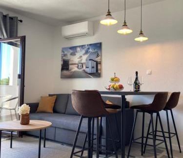Food & DrinkTea/Coffee makerBathroomPrivate bathroom, Toilet, Shower, Hairdryer, Bathtub or shower, Towels, Toilet paperMedia & TechnologyFlat-screen TV, TVGeneralIroning facilities, Private entrance, Carpeted, Heating, Hypoallergenic, Trash cans, Air conditioning, Tile/Marble floor, Smoke Alarm, Key access, IronOutdoorsOutdoor dining area, Patio, Balcony, Outdoor furniture, BarbecueKitchenDining table, Microwave, Kitchenware, Kitchen, Oven, Electric kettle, Refrigerator, Wine glasses, Dishwasher, Coffee machine, Washing machine, Stovetop, Cleaning productsLiving AreaSofa, Dining area, Sitting areaViewView, Sea viewBedroomChildrens' cribs, Wardrobe or closet, LinensBuilding CharacteristicsPrivate apartment in buildingRoom AmenitiesSofa bed, Drying rack for clothing, Socket near the bed, Non-feather pillow, Hypoallergenic pillowPhysical distancingSingle-room AC for guest accommodation |
