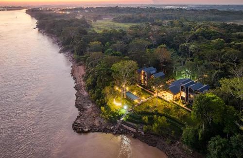 Enai is located in the forest, on the shore of the Madre de Dios River, 15 minutes from the city of Puerto Maldonado. Enai has a restaurant, outdoor pool, bar and garden. Guests can use Wi-Fi and free private parking. All rooms have a balcony with river views. Penthouse and Deluxe rooms have air conditioning. Tropical rooms only have fan. The reception staff speaks English and Spanish. At Enai, we help you organize your personalized excursion program. The nearest airport is Puerto Maldonado International, 5.6 mi from the hotel.
