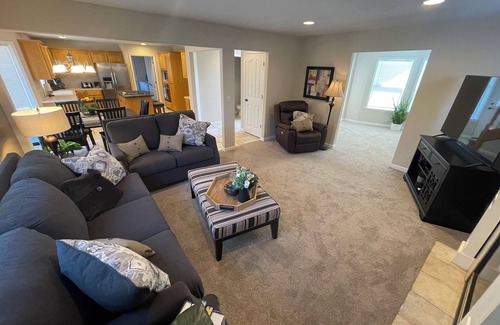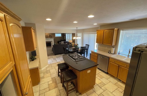 Enjoy a peaceful stay at this 4-bedroom house in La Center. The bedrooms feature 1 king bed and 3 queen beds, perfect for a group getaway. With amenities like AC, heating, and an iron, your comfort is guaranteed. The 2.5 bathrooms offer a jetted bathtub and other essentials. Relax in this amazing property and make unforgettable memories with your guests. We'll be available to answer any questions while you stay at our place.