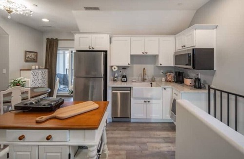 The luxurious bathroom includes a very deep soaking tub and two sinks. All the countertops in the suite are marble and the unit is new as of 2024 and clean. There is a Solatube in the bathroom that provides plenty of natural light during the day.