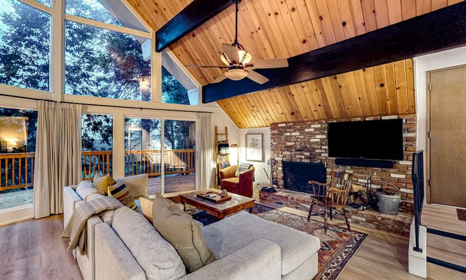 Enchanting lake retreat with fireplace, games, & great deck views - dog-friendly | House in Crestline