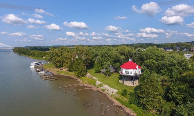 Live lavishly as you stay in this beautiful and unique lighthouse in Louisville! With panoramic waterfront views, and a boat launch right behind the unit, there is plenty to enjoy in this riverfront haven! Just a short walk away from Captain's Quarters, where you can enjoy great food and live music! Inside you'll find a perfect blend of style and comfort, with plenty of space for the whole family or a group of friends. Want to visit downtown? You're just a short 20 min drive away!