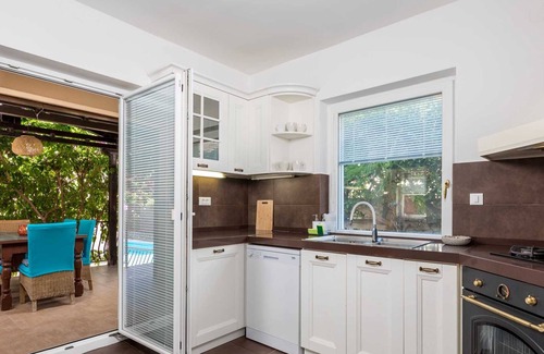 Welcome to Vila Hana, an enchanting Villa situated in the picturesque haven of Ičići, Croatia, nestled at the address Ulica bršljana 5. This striking abode offers a splendid blend of serenity and convenience for holidaymakers looking for a perfect getaway. Vila Hana is a warm and inviting home that accommodates up to 6 guests, but provides optimal comfort and space for 4. The Villa is comprised of three beautifully appointed bedrooms and two immaculate bathrooms, ensuring every guest experiences the comfort and luxury they deserve. The spacious and luminous living room area is a perfect venue for your cozy evenings after exploring the captivating locales of Croatia. Pet-lovers need not worry as Vila Hana warmly welcomes one pet per stay, so you don't have to leave behind your furry companion while you indulge in your tranquil vacation. Vila Hana provides two parking spaces, eliminating any parking hassle and ensuring the safety of your vehicles. This charming Villa, Vila Hana, possesses a balanced combination of tranquil relaxation and access to the vibrant life of Ičići. Book your stay today, and let Vila Hana serve as your home away from home in the beautiful country of Croatia. Experience the Enchanting Vila Hana, experience Croatia.