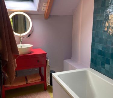 Encore une fois, La maison coloréé is a recently renovated vacation home in Locmalo where guests can make the most of the garden and barbecue facilities. This property offers access to a terrace, free private parking, and free Wifi. The accommodation provides a shared kitchen and luggage storage for guests. The vacation home consists of 1 bedroom, a living room, a fully equipped kitchen with a dishwasher and a coffee machine, and 1 bathroom with a hot tub and bathrobes. Towels and bed linen are provided in the vacation home. There's also a seating area and a fireplace. Guests at the vacation home will be able to enjoy activities in and around Locmalo, like cycling, canoeing, and hiking. The vacation home has a picnic area where you can spend the day outdoors. Parc des Expositions Lorient is 24 miles from Encore une fois, La maison coloréé, while Lorient Train Station is 26 miles away. Lorient South Brittany Airport is 29 miles from the property.