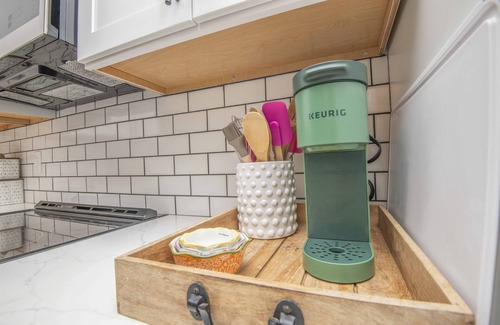 Fully equipped kitchen – stainless appliances, quartz counters, coffee maker, and everything you need to cook up a family meal.