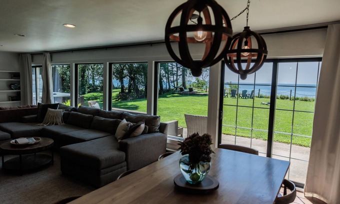 With Lake Michigan in your backyard, this five-bedroom, three-bathroom home will stun you with its endless Lake Michigan private views! Enjoy beautiful sunsets from the huge backyard perched on a scenic bluff with one hundred feet of Lake Michigan frontage. Inside this newly renovated home of over 3100 square feet, you will enjoy plenty of room for everyone! Home includes four queen bedrooms, two bunkbeds that sleep three persons each, two toddler beds, a pack-n-play. Amenities include Starlink high speed wifi, outdoor furnished patios, expansive sunroom, remote-controlled awnings, outdoor shower, rec room with pool table and ping pong, generator, central air, two washers and dryers, charcoal grill, fire pit, & a fully-equipped kitchen.