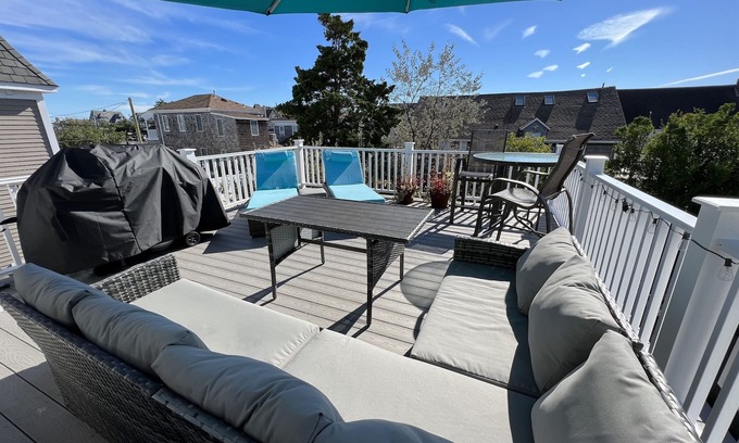 Best location! Cute two bedroom, second and third floor rental, with private entrance in large Victorian home, in the heart of Beach Haven, one block from the beach, and across from the Surf Light Theatre. Eat in kitchen, living room, bathroom; third floor converted attic has two bedrooms. Large upper deck and grill area for your exclusive use. RECENTLY ADDED 2-3 person Hot tub! Walking distance to shopping, restaurants, bars, marina, Fantasy Island Amusement Park, Thundering Surf Water Park, and the one and only Chicken or the Egg, their hot wings made famous by the Food Network's Man Vs. Food.