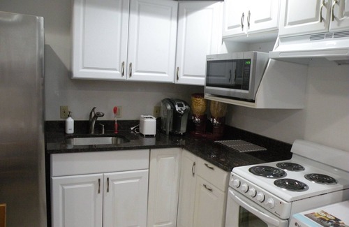 English basement studio of this newly rebuilt town house is in Capitol Hill Historic district. This efficiency basement room has one queen bed with one shower (full bath) and a sleeper sofa (full /almost queen bed), with all amenities you could need, including a kitchen, microwave, oven, dishwasher and washer/dryer combo. There are utensils, pots, pans, plates, knives and everything you will need in a kitchen. Hair dryer, towels, soap, shampoo, conditioner, iron, ironing board are also provided. Flat screen TV and internet connection are provided too.