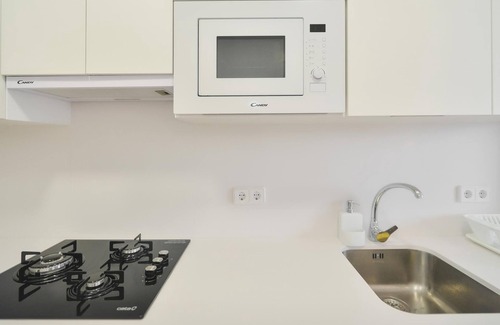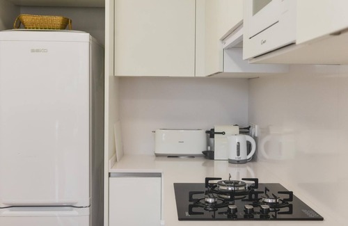 The independent kitchen, fully equipped, includes everything you need for a comfortable and functional stay.