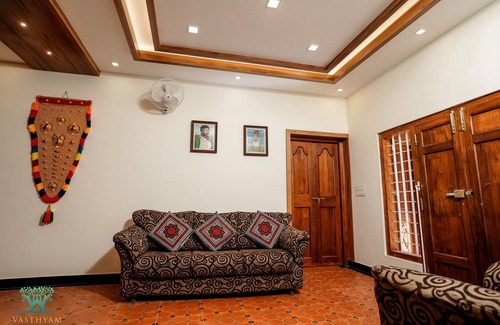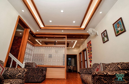 Our home is in a quiet residential neighbourhood just a 15-minute drive from Kenichira, Wayanad, the nearest town. It's a spacious, comfortable two-story house with 1 suite room and 2 Queen sized bedrooms. All three rooms have ensuites. The suite room is located on the first floor. It features a comfortable, super king-size bed, a desk, a closet, and a private balcony overlooking our garden. Guests can use the living room, dining room, and kitchen.