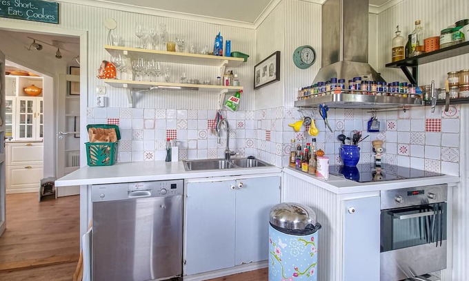 Spend unforgettable days in the picturesque surroundings of your vacation apartment and enjoy the many beautiful nature experiences. Your cozy vacation apartment near the forest is the ideal place for a family vacation. With its charming and colorful decor, it offers a charming stay just north of Gothenburg. Start your day at the large wooden dining table while you enjoy a hearty breakfast and make your plans for the day. The sofa and other seating invite you to relax. Grab a book or play cards with the whole family. The garden with its small stream and trampoline is ideal for children to play and run around.