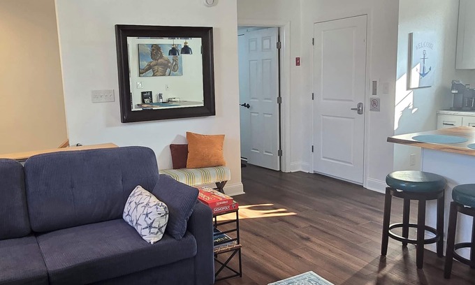Our 1-bedroom private apartment is only four blocks to the Virginia Beach Boardwalk and Atlantic Ocean.
