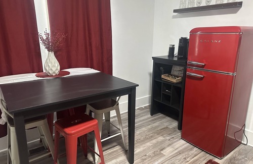 The Posh Quincy House is the best way to experience all the vibrance and charm Ogden has to offer - year round! This unique vintage space offers 4 private guest rooms with 3 queens beds and 1 family guest room which includes 1 twin-over-twin bunk bed and 1 regular twin bed sleeping a total of nine guests in the house. Portable cribs (pack-n-play) and self inflating queen-size air mattresses available upon request. Enjoy the convenience of a full kitchen with all appliances, basic cooking equipment, serving dishes and dining area. Additional fold-out table + chairs available upon request. This property offers the security of staying on a calm family-friendly neighborhood street while being in the center of all the downtown excitement! Vintage yet modern feel with gorgeous early 1900’s high ceilings, unique spaces throughout the house and retro interior design.