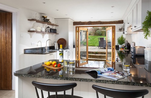 Hope Cottage is quintessentially Cotswolds through and through; effortlessly combining cosy and characterful with contemporary and fresh. Perfect for a family holiday or gathering of friends; the spacious dining kitchen is the real heart of the home, with plenty of storage, granite tops and high-end appliances, complemented by a large rustic dining table for everyone to gather around, a charming snug providing a second comfy sitting area, and french doors flooding the room with light and spilling out onto the pretty raised terrace. A useful boot room doubles up as a utility area, complete with a second butler's sink and a washer/dryer.