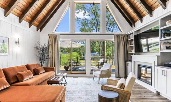 This fully rehabbed mid century modern home is nestled on the quiet side of Lake Geneva. Luxurious upgrades, fully stocked chefs kitchen, fire pit, back yard, bags set, new Weber Grill purchased in fall of 2022, video games, outdoor seating, and short drive or walk to Fontana’s Lake Geneva beach. Beach chairs, beach toys, and towels all included in rental. Coffee bar, shampoo, conditioner, body wash included. Pack n Play, crib sheets, high chair, children’s dishes etc. all included in this rental. Multiple golf courses nearby as well. 6 night minimum rental required. 8 Guests