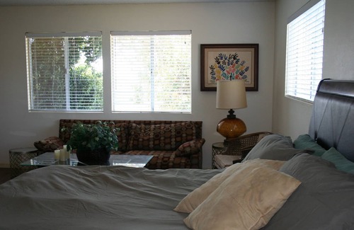 Rent a room with private bath at a private horse ranch. I'm offering a spacious 300 sq ft room that offers all the amenities one needs while visiting North San Diego County. The room has a large TV with many paid streaming services, a Kuerig coffee maker (with pods) along with a small fridge and microwave oven. During your stay, you'll be within 30 minutes of great hikes, beautiful beaches, wineries, Safari Park, and more. You will wake up to the smell of orange blossoms, you can stroll down to the barn to visit the horses and pot-bellied pigs or around the neighborhood. After breakfast, you can head out for an adventure or relax by the swimming pool and spa. There's also a 2-person sauna too! It's quiet yet close to downtown Oceanside or Temecula. Please be sure to read the details about the bathroom and the house to make sure this is the right place for you!