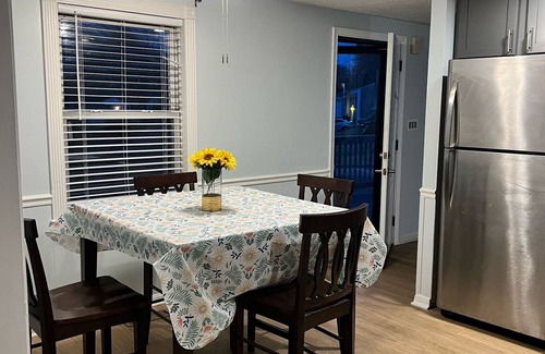 This Edgewood house boasts 3 inviting bedrooms, including 2 queen beds and 1 twin bed. 1 queen bed is an air mattress and 4th room is equipped with office desk and a chair. The 2 cozy living room features a sofa bed for extra sleeping space. With 2 bathrooms equipped with showers and hair dryers, guests will feel right at home. Whether you're looking to relax in the beautiful surroundings or explore the enchanting city, this welcoming property is the perfect retreat for your getaway. We look forward to hosting you at our place.