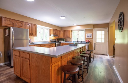 The price structure is based on the rate for four people. The king bed (main bedroom #1) and queen bed (bedroom #2) will be open for 2–4 guests. All other bedrooms will be locked. 5–6 guests: Double queen bedroom #3 will be unlocked. 7+ guests: Bunk bedroom #4 will be unlocked.